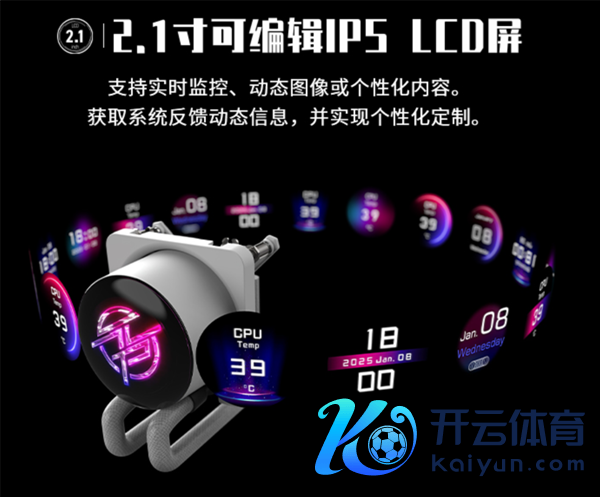 MPG CORELIQUID P13 360冰曜的最大亮点在于其搭载的2.1英寸可剪辑IPS LCD屏,用户可通过预设主题或自界说本色,及时监控系统情状(温度、转速等)或展示个性化图像。
