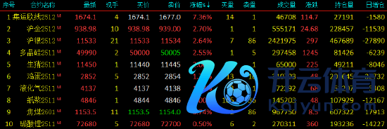 2025年10月14日,国内期货主力合约涨跌互现。玻璃跌超3%,甲醇、原木、苯乙烯、菜粕、工业硅、铁矿石跌超2%。涨幅方面,集运指数(欧线)涨超7%,沪银、沪金、多晶硅、生猪涨超2%。
