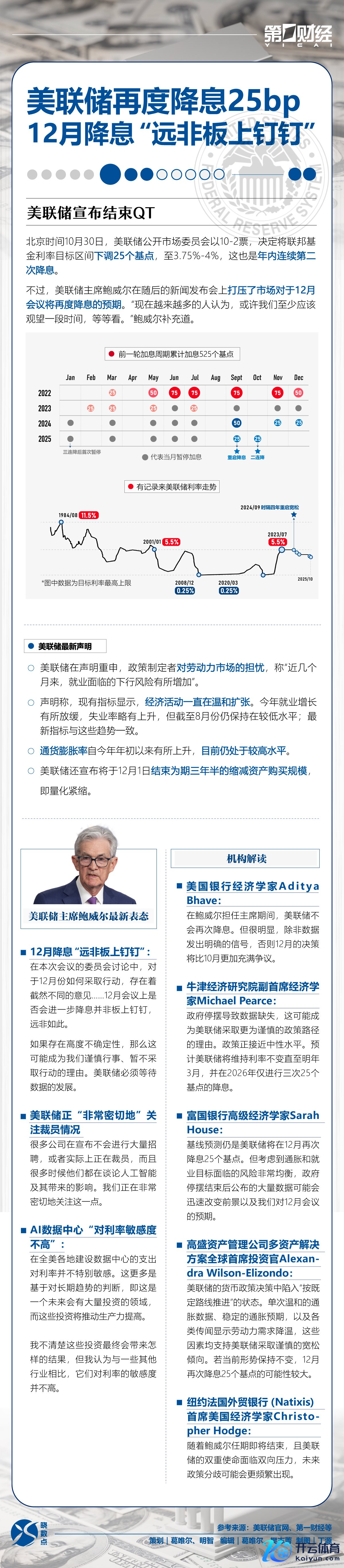 晓数点|好意思联储再度降息25bp,机构若何解读?晓数点|好意思联储再度降息25bp,机构若何解读?