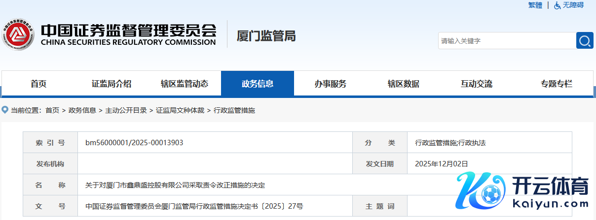 中新经纬12月2日电 据厦门证监局网站12月2日音问,厦门证监局对厦门市鑫繁荣控股有限公司(下称“厦门鑫繁荣”)接收责令改正次第。