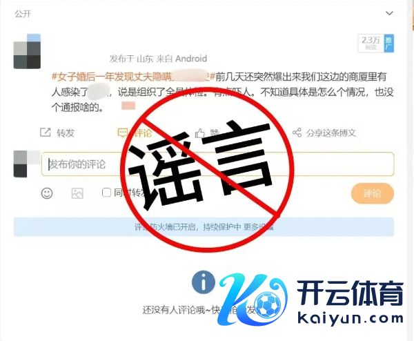 近日,山东烟台公安机关网安部门责任中掌抓:有东说念主在网上发布“腹地商厦发现某传染病患者,组织全员进行体检”的信息,激发网民讲理和陆续,变成当地住户焦虑,给该企业带来了极大的负面影响开yun体育网,滋扰各人范例。