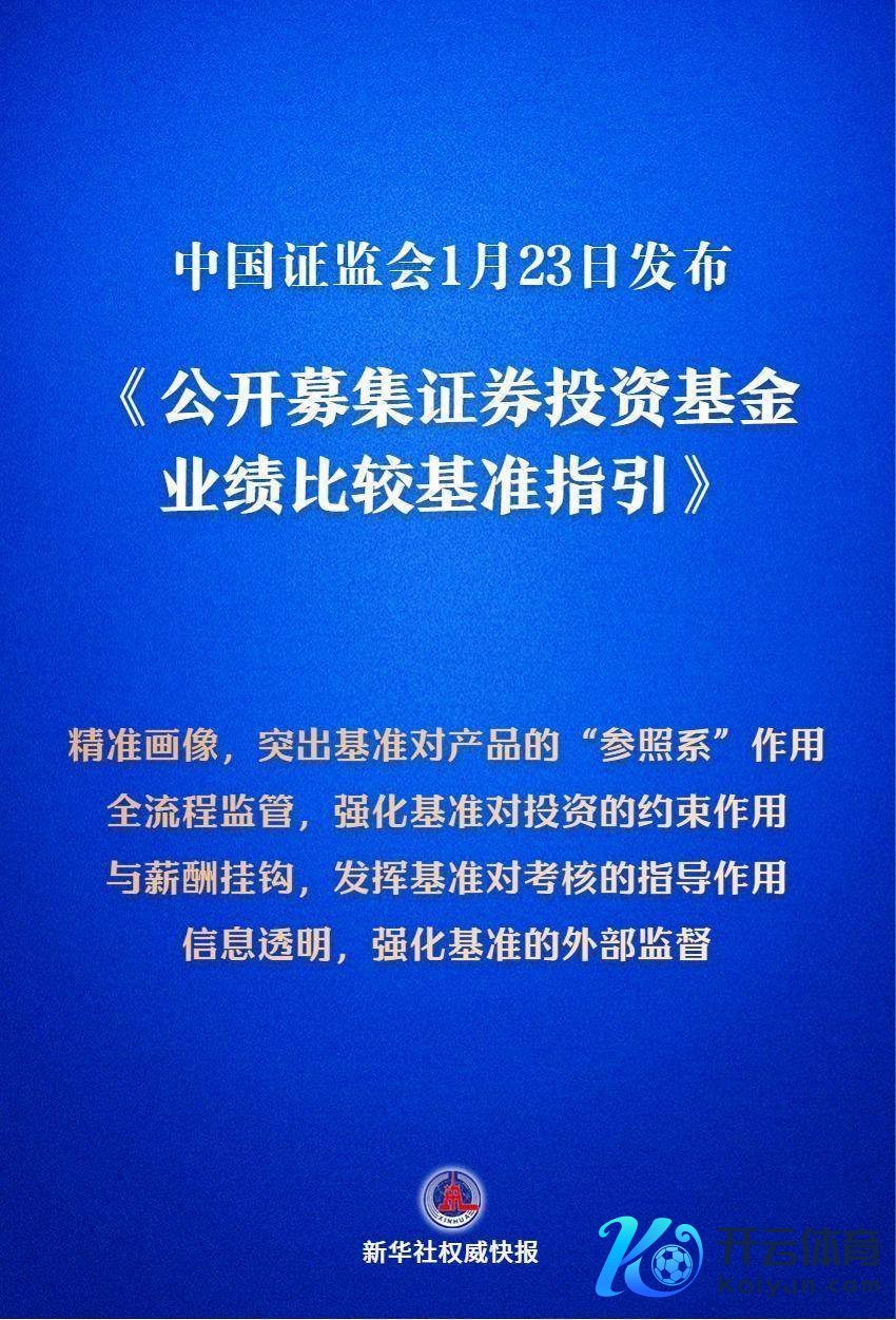1月23日云开体育,中国证监会发布《公开召募证券投资基金事迹比拟基准指点》。中国基金业协会同步发布《公开召募证券投资基金事迹比拟基准操作确定》。