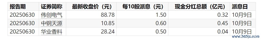 A股分成派息转增一览(9月30日):3股本日股权登记