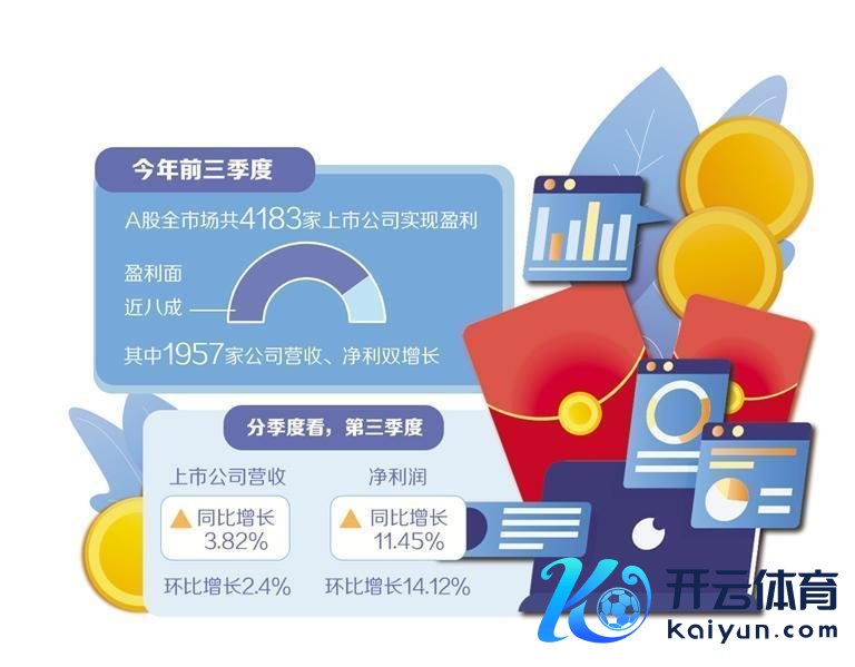 业内东谈主士示意,相识分成是熟悉上市公司计算质料的试金石,面前上市公司禀报鼓舞的意愿横蛮,其慎重的计算功绩、回升的盈利才气是中枢撑抓。本年前三季度,A股全阛阓共4183家上市公司结束盈利,盈利面近约略,其中1957家公司营收、净利双增长。分季度看,第三季度上市公司营收、净利润同比增长3.82%、11.45%,环比增长2.4%、14.12%,逐季向好态势接续自如。